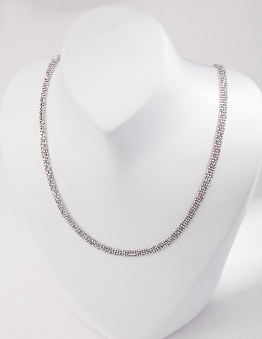 This delicate beaded sterling silver necklace exudes charm and sophistication, making it a perfect layering piece. Its lace-like design adds a touch of understated elegance, enhancing your everyday style or special occasion look.