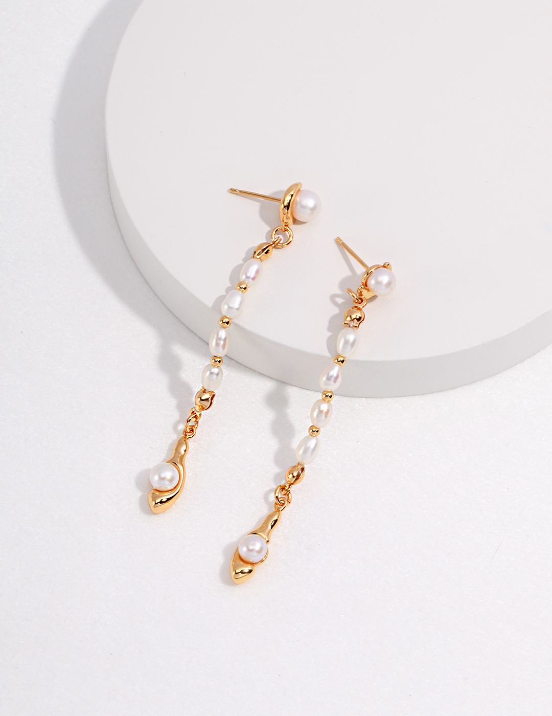 Embrace natural elegance with our Drip-Inspired Sterling Silver Pearl Earrings, designed to capture the fluid beauty of nature. The cascading design flows seamlessly from metallic elements to delicate pearls, blending sterling silver droplets and pearls for a harmonious and sophisticated look. Crafted from sterling silver, these earrings are available in platinum silver and vintage gold finishes.