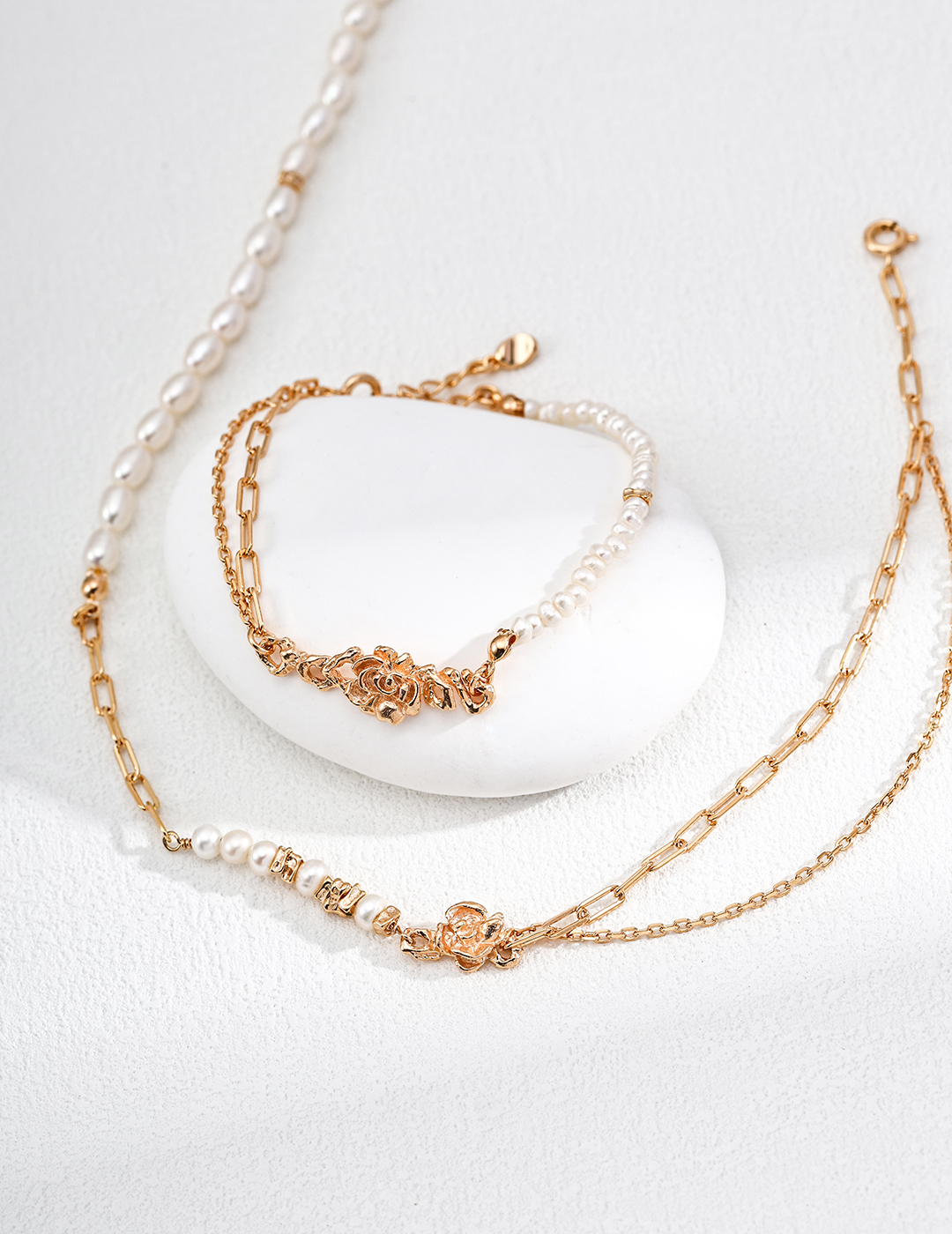The Dual Grace Pearl Chain Necklace redefines classic sophistication with an asymmetric design that pairs natural freshwater pearls with sleek gold-plated chains. Each side tells its own story โ the lustrous pearls capture organic beauty, while the geometric links add a touch of contemporary edge. Together, they form a perfect equilibrium of softness and strength.