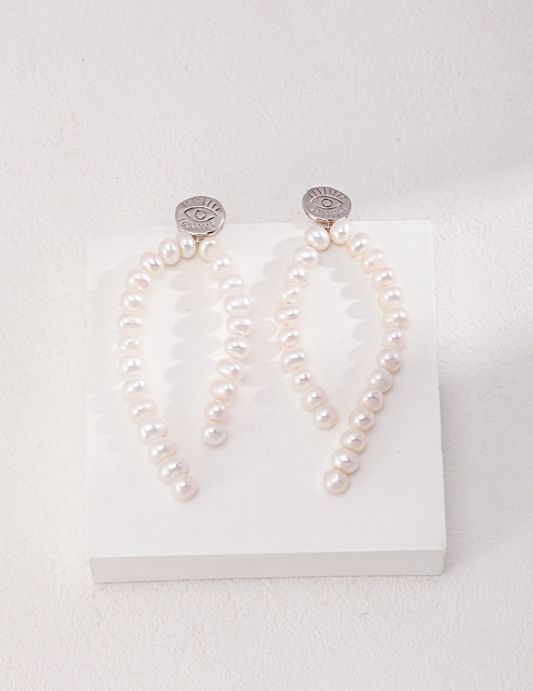 These Eye-Inspired Sterling Silver Pearl Earrings II captivate with their regal allure and versatile charm. Featuring pearls and a bold design, they effortlessly complement vintage-inspired looks, evening events, or daily commutes. Elevate your style with a touch of sophistication and timeless elegance.