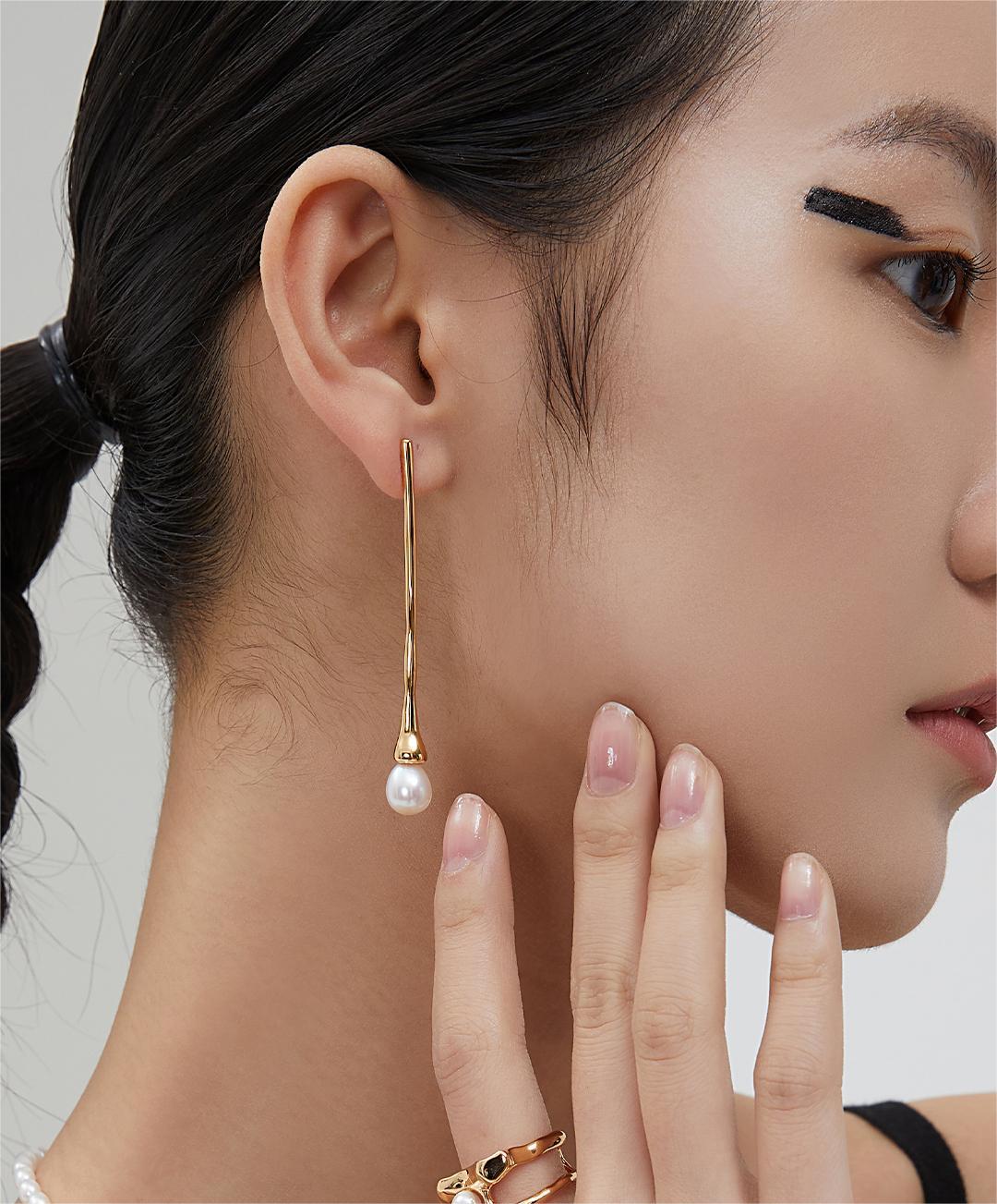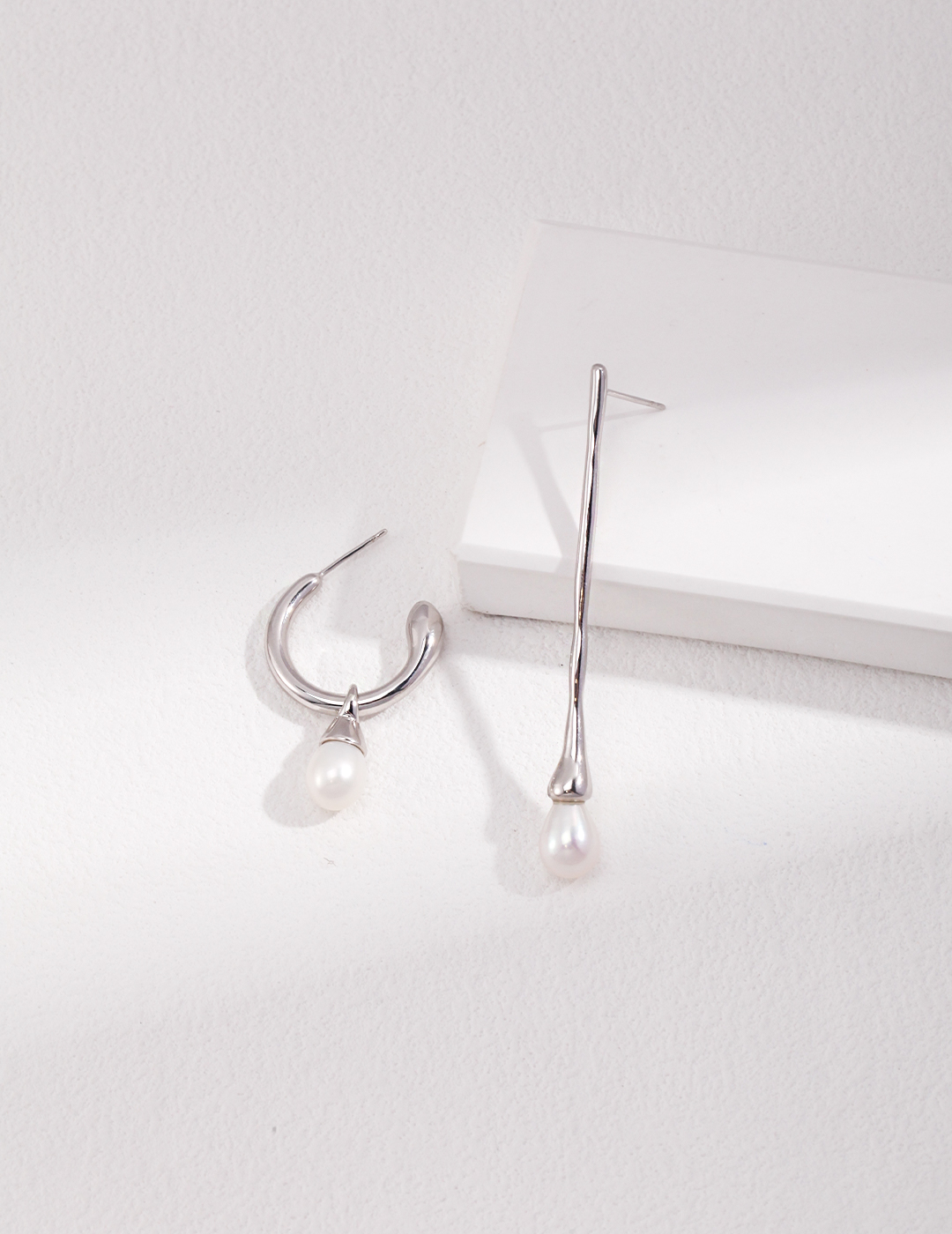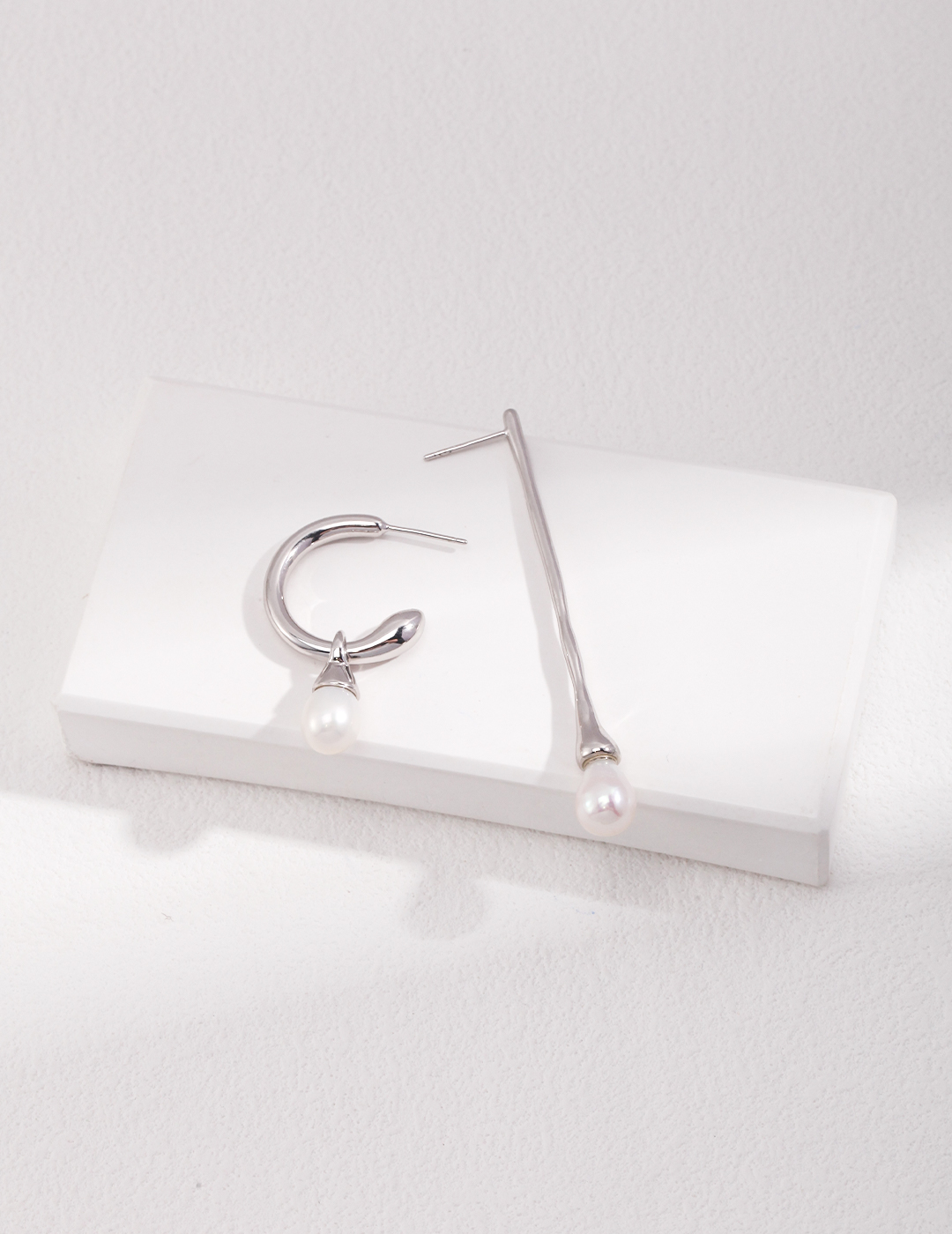 Experience the elegance of nature with these flowing water sterling silver pearl earrings in AB design. Inspired by the beauty of flowing water, the streamlined design captures the essence of water droplets in motion. The minimalist shapes emphasize the purity of the concept, while pearls add a touch of sophistication to complete the look.