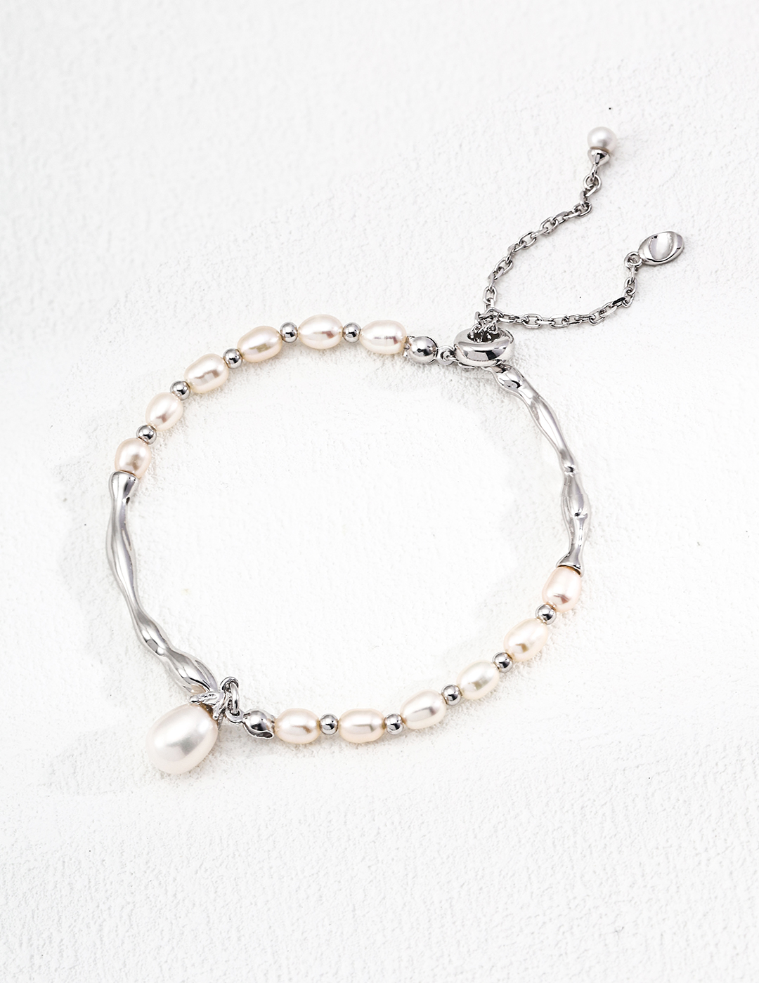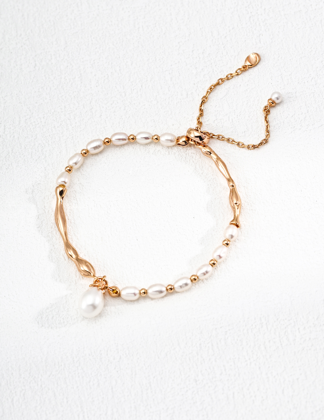 Finished with an adjustable chain and pearl charm, this bracelet offers a comfortable, customized fit for any wrist size. Lightweight and versatile, itโ€™s a timeless accessory that effortlessly transitions from day to night.