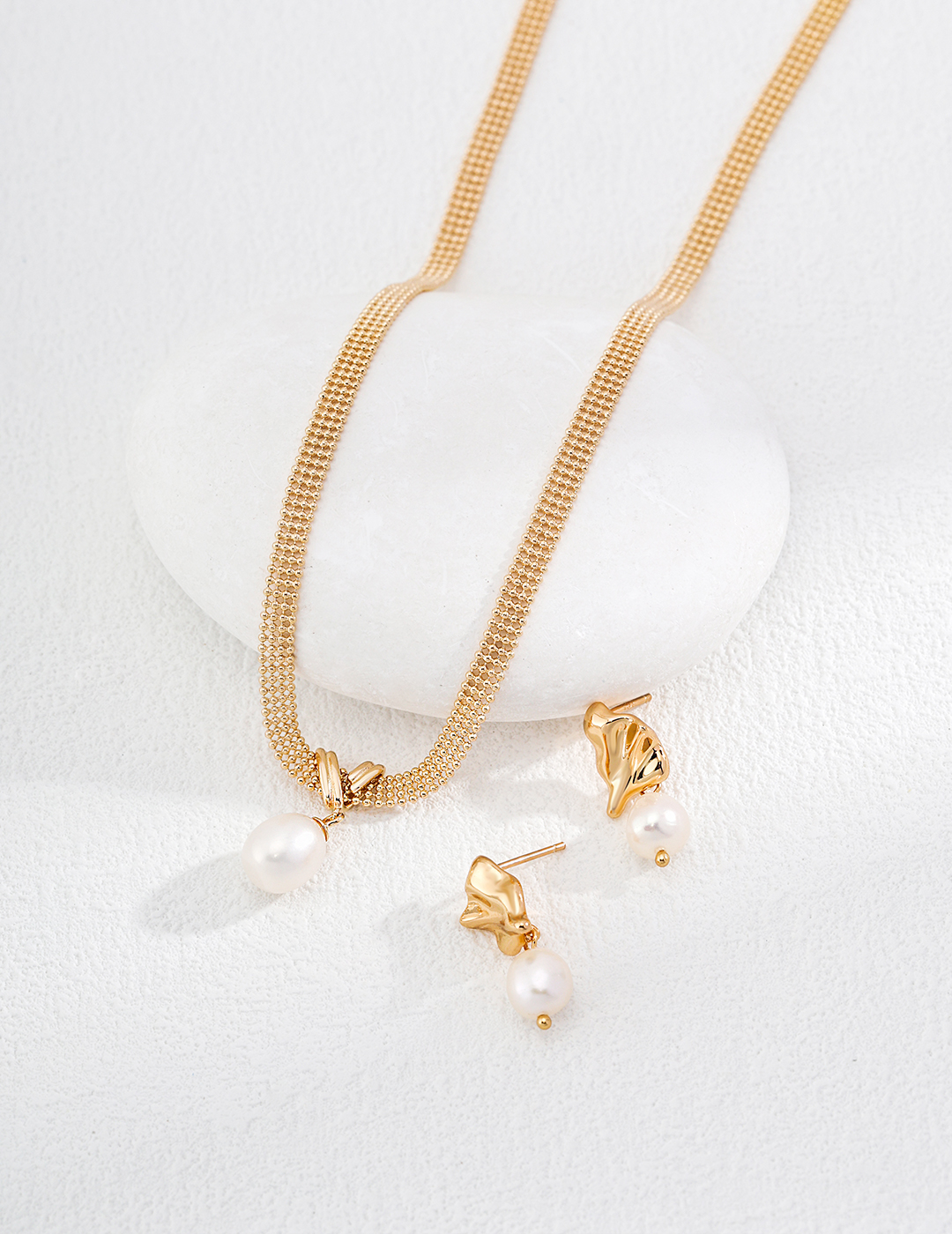 Indulge in elegance with our Lace-Style Sterling Silver Pearl Necklace, featuring a unique design with four aligned silver beads for a sophisticated, modern look. The necklace is crafted from high-quality sterling silver with a beautiful vintage gold finish and includes an adjustable chain, perfect for any neckline. Highlighted by a stunning 10 x 8mm pearl, this piece combines timeless charm with contemporary style.