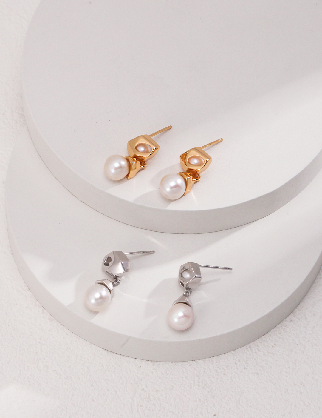 Discover our beautiful Lantern Sterling Silver Pearl Earrings, a perfect blend of elegance and modern design. These earrings feature a charming lantern shape adorned with pearls, making them a standout accessory for any outfit.