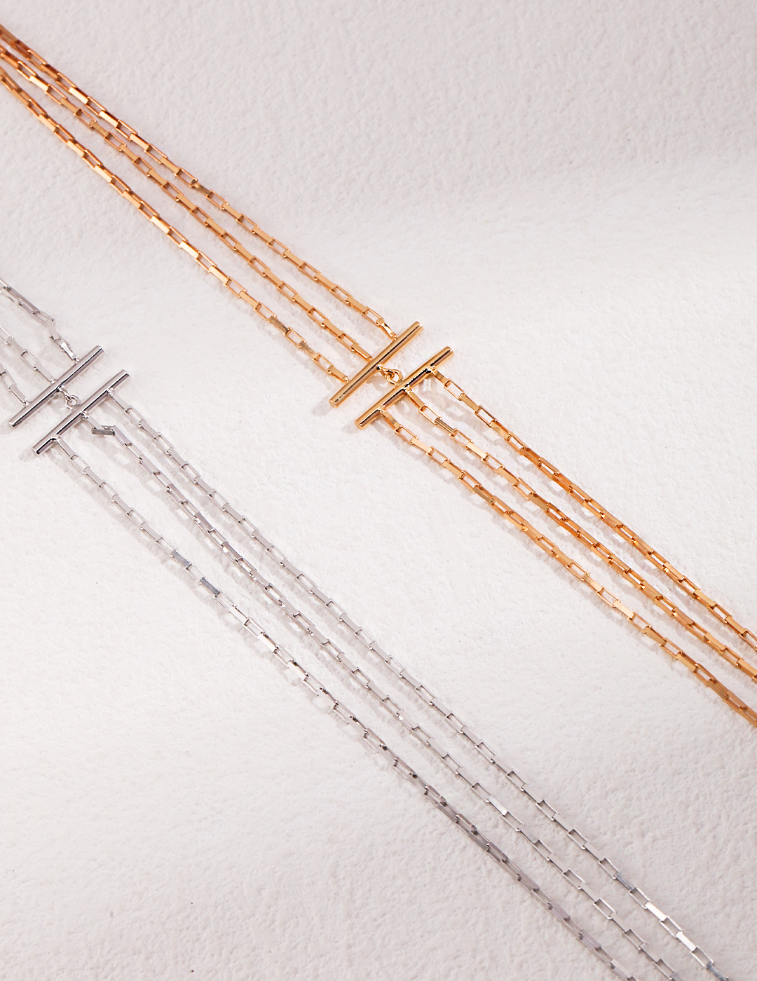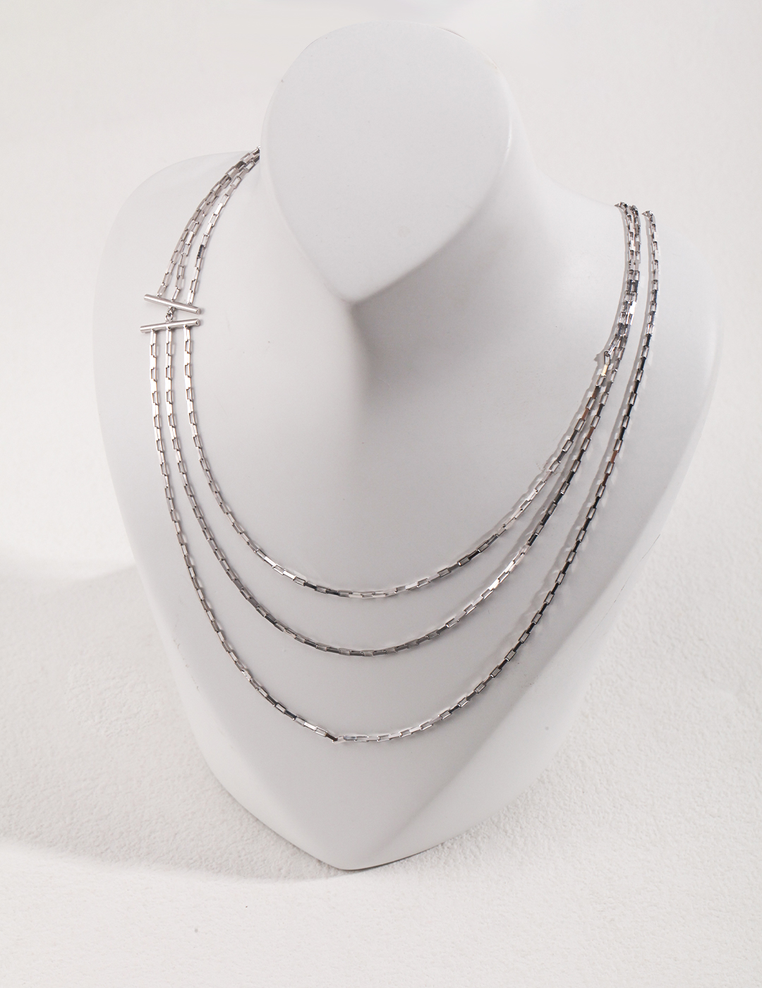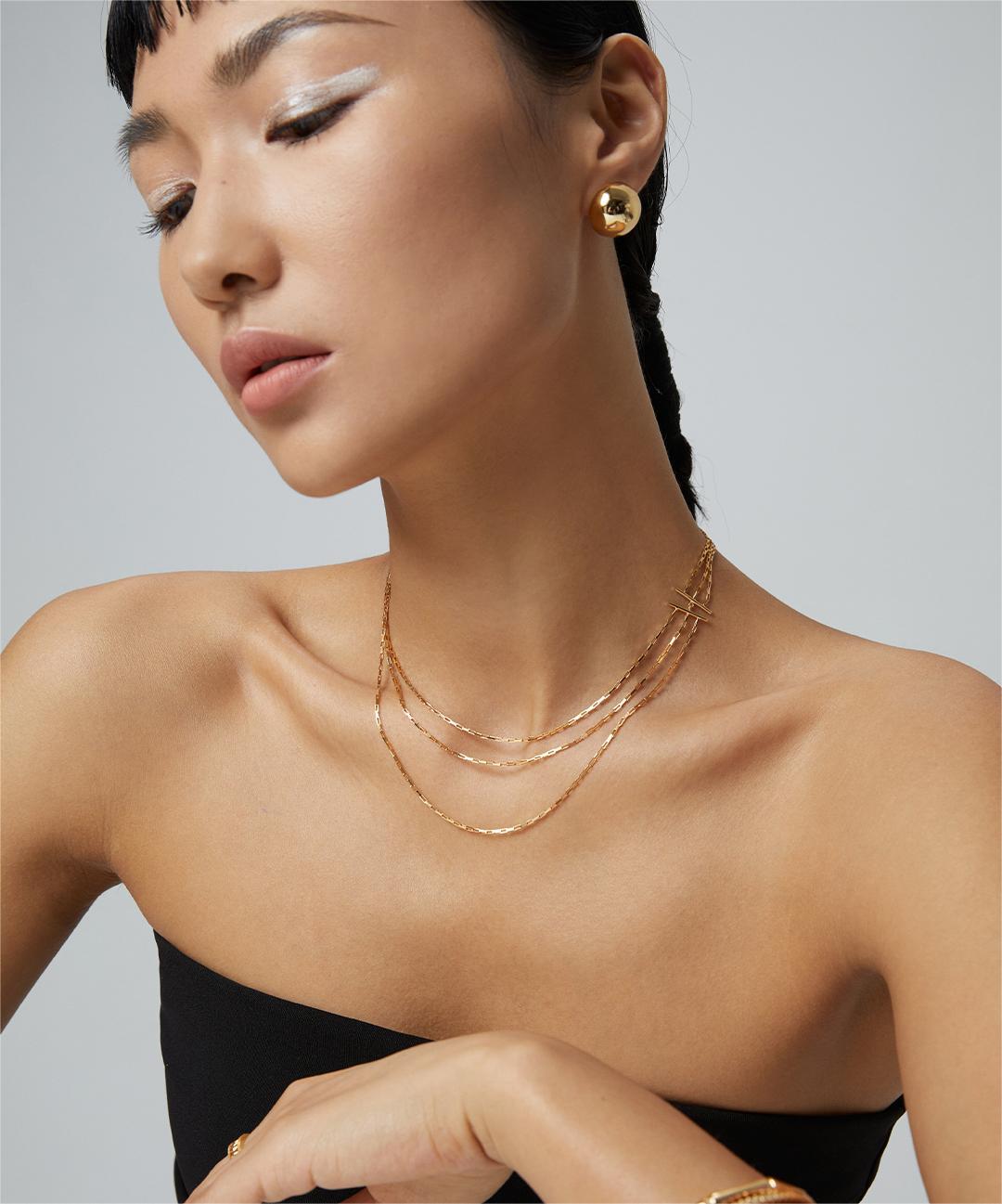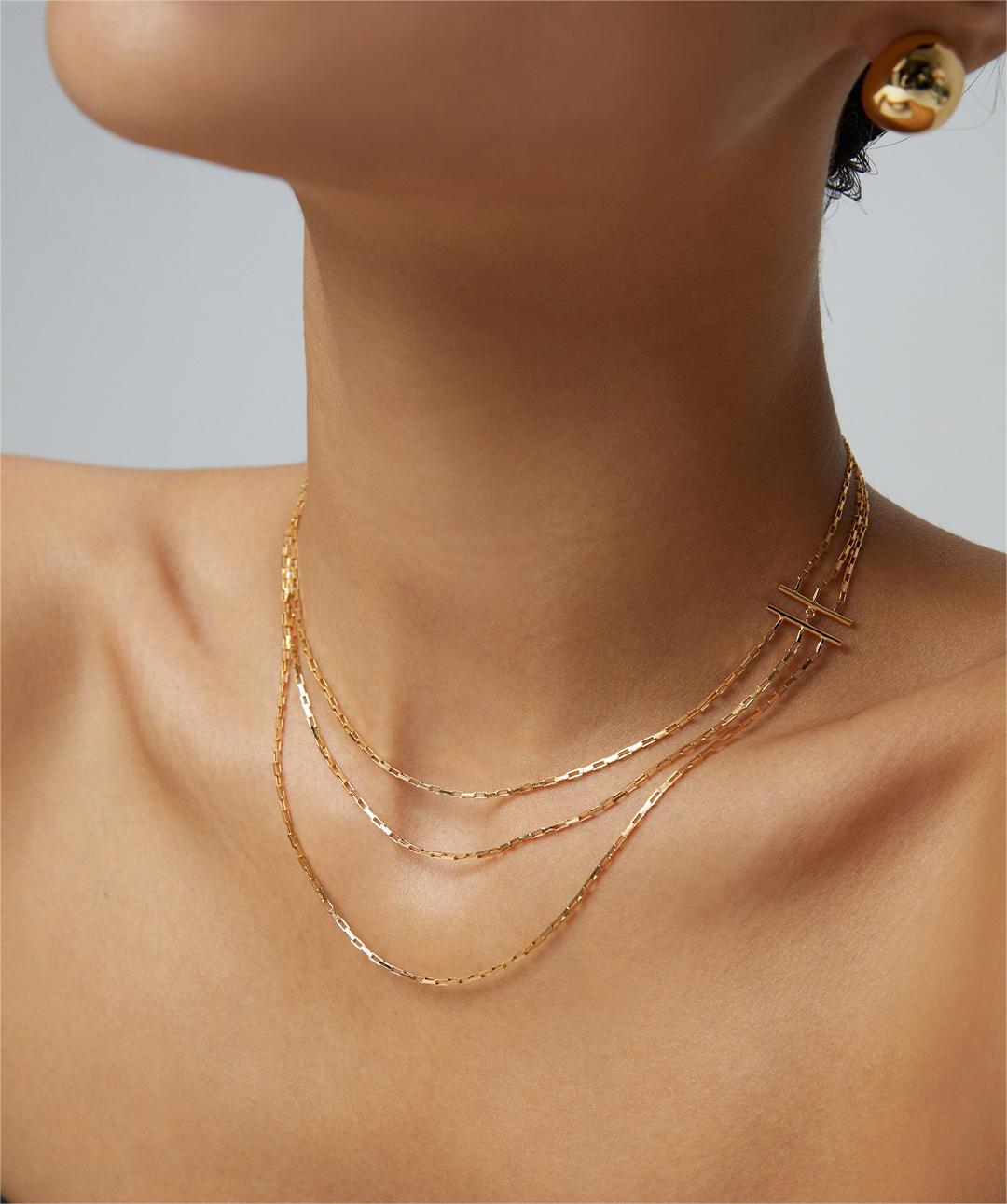 Discover the perfect blend of contemporary design and timeless charm with our modern minimalist multi-layer sterling silver necklace. Featuring three layered chains, this elegant piece creates a sophisticated and stylish look that accentuates your neckline beautifully.