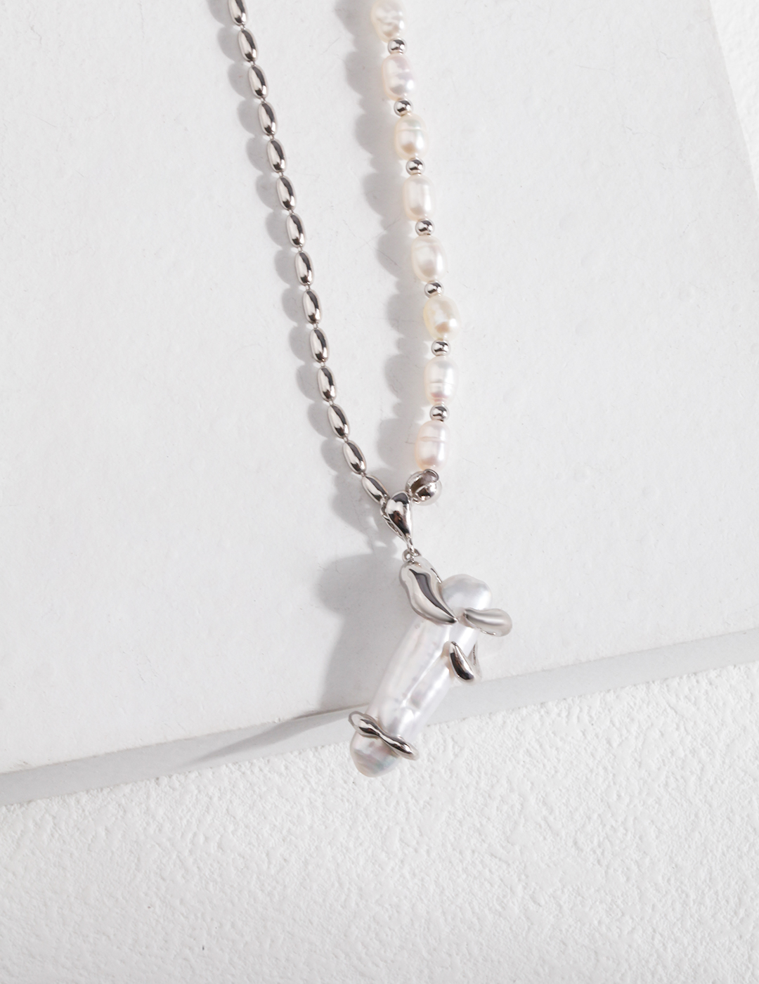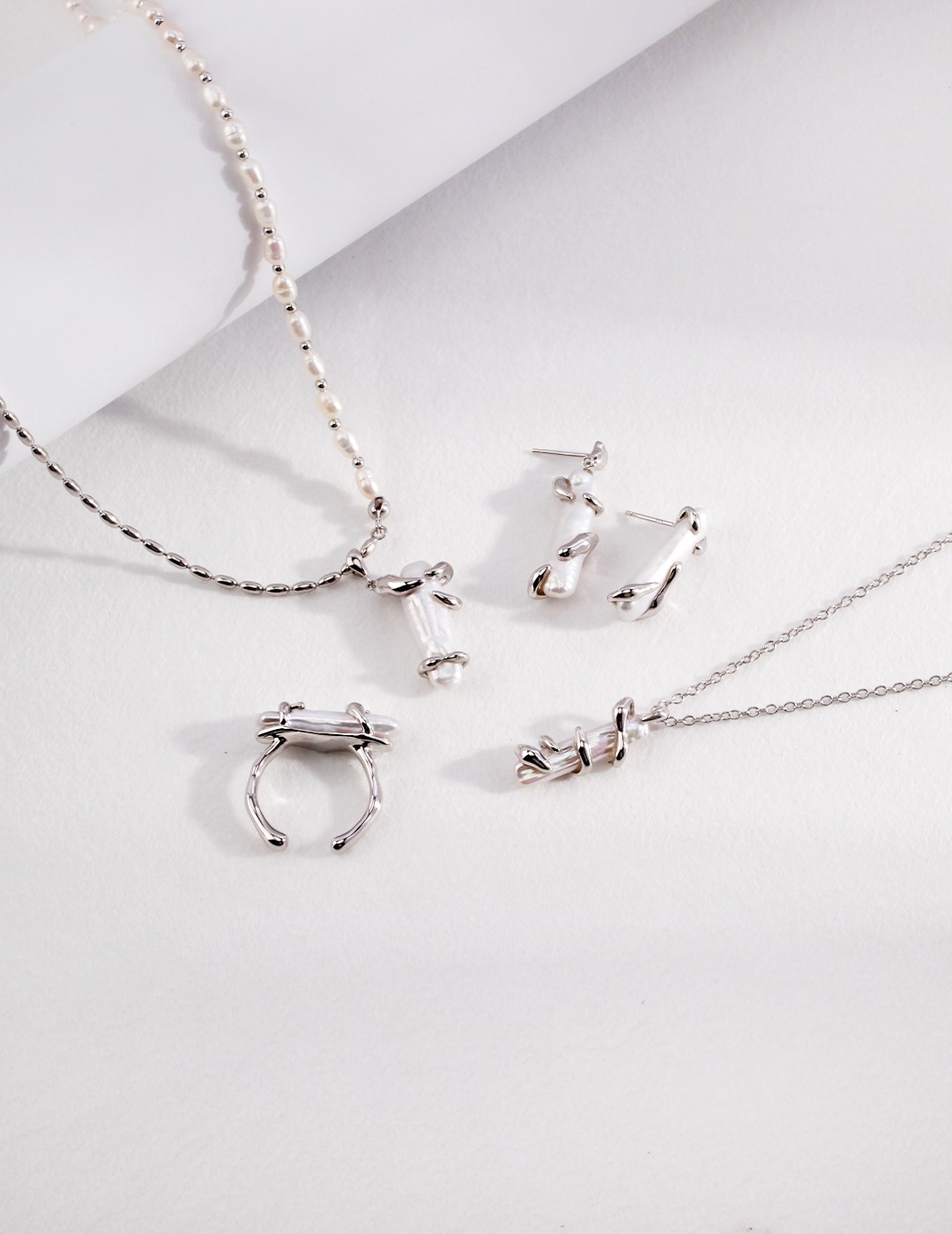 This exquisite Natural Element Sterling Silver Baroque Pearl Necklace features natural Baroque pearls embraced by fluid sterling silver, symbolizing the harmony of nature and art. The interplay of luminous pearls and radiant silver creates a romantic and distinctive statement, perfect for any occasion.