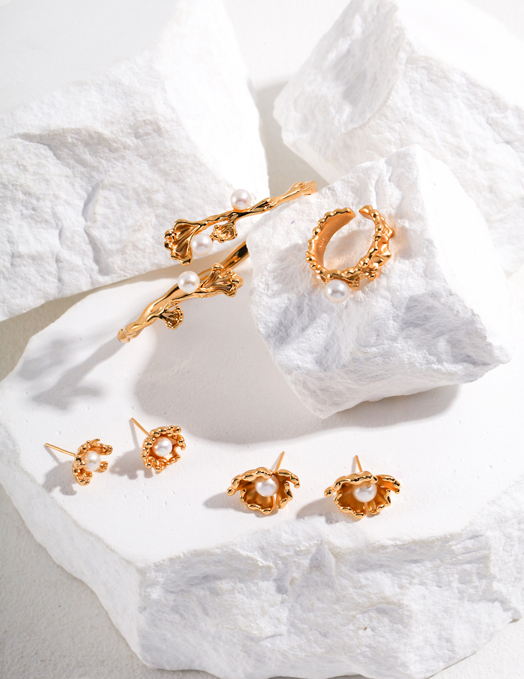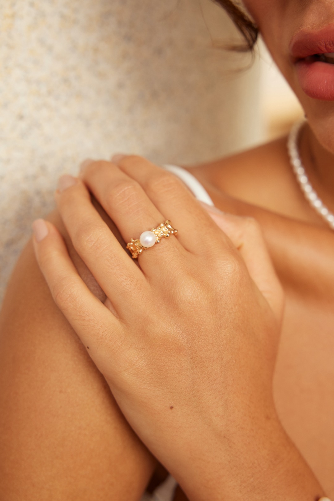 The pearl is set amidst the undulating waves of the ring’s design, creating a refined and romantic aesthetic. The lustrous pearl mirrors the moon’s glow, adding a touch of elegance and sophistication to this stunning piece.