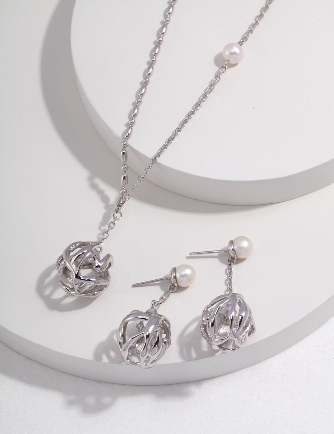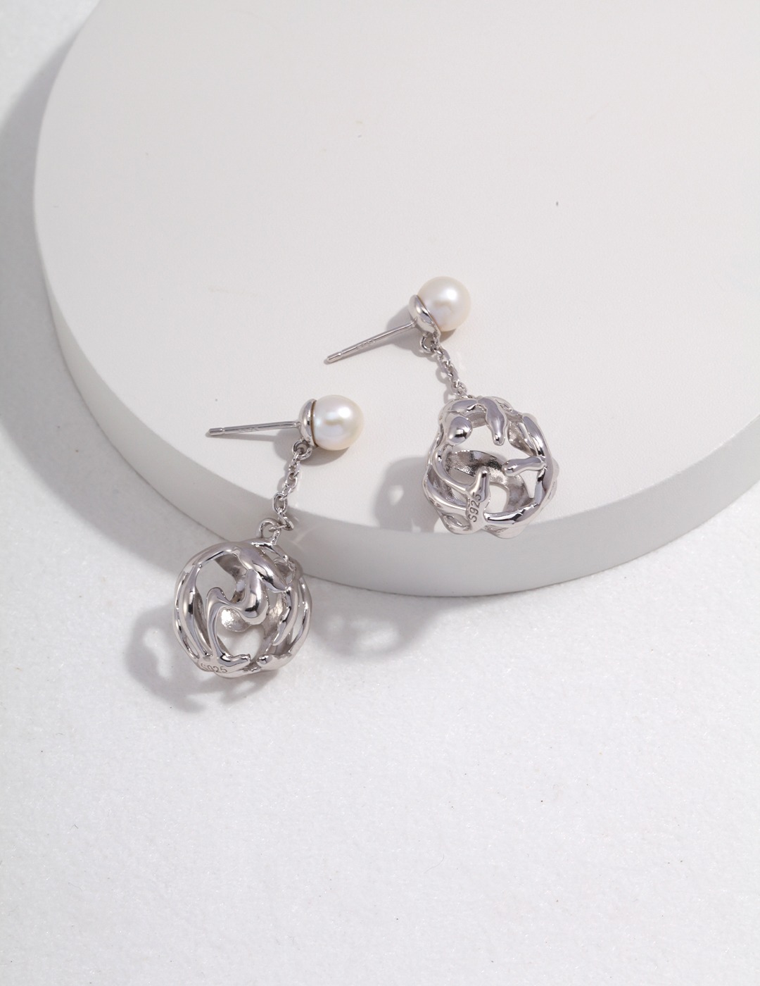 Experience the elegance of our Spherical Sterling Silver Pearl Earrings, where natural fluid elements beautifully envelop a genuine pearl. This design creates a spherical shape that allows the pearl to move gracefully, adding a dynamic and enchanting touch to your look.