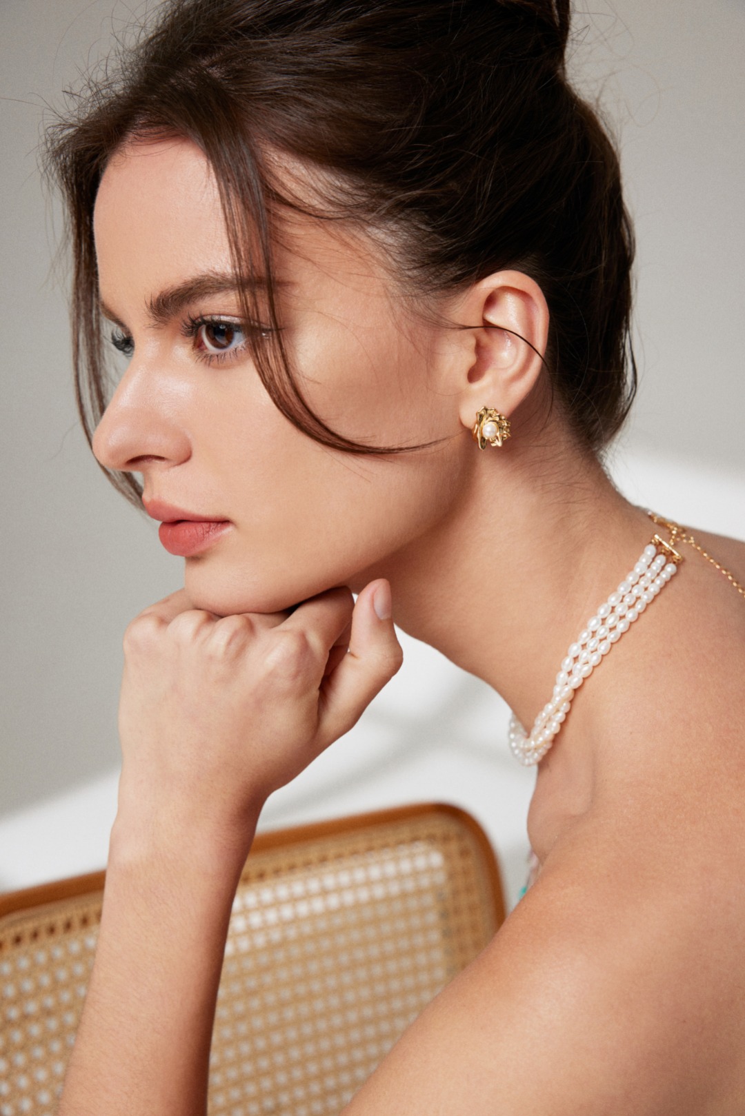 These Sterling Silver Calyx Pearl Earrings showcase a delicate calyx design adorned with pearls, embodying vitality and grace. The combination of vintage gold tones and the soft glow of pearls creates a refined yet lively accessory perfect for any occasion.