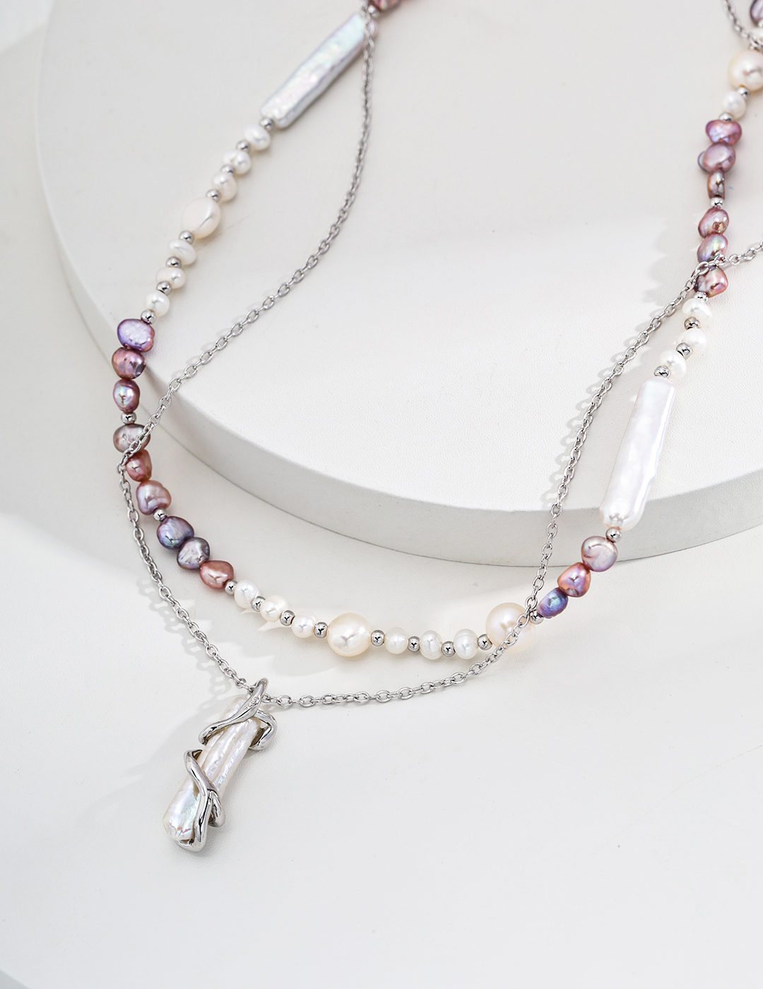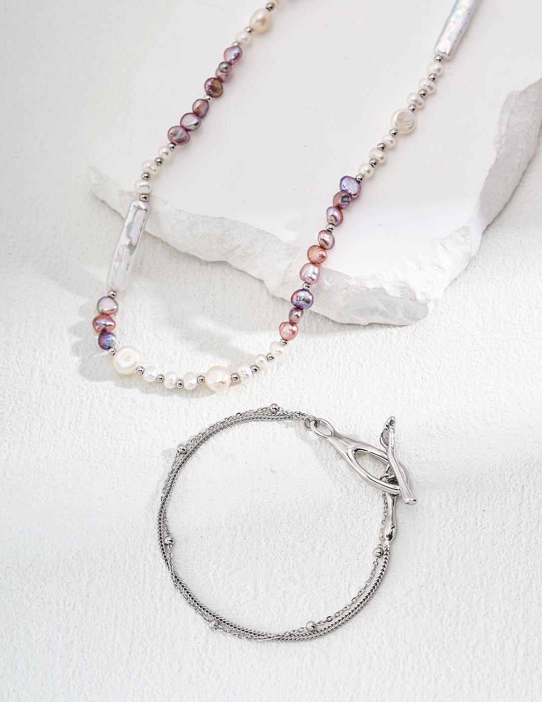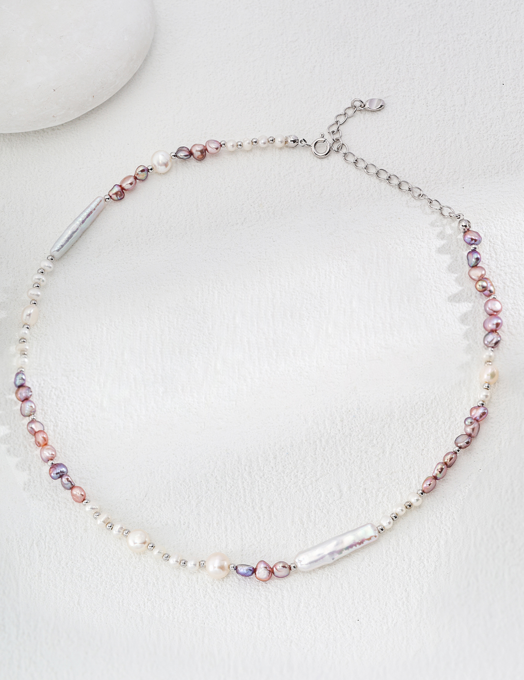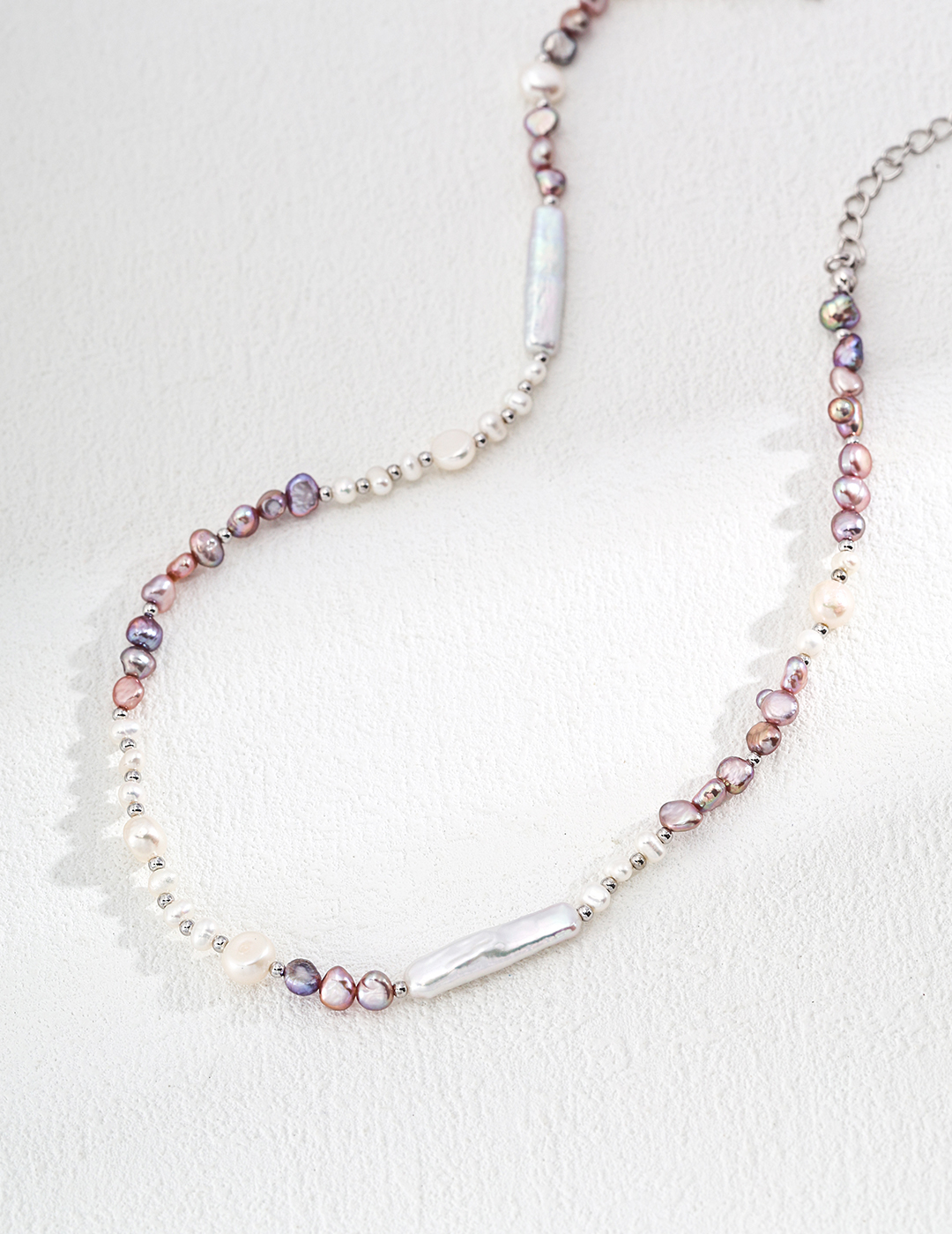 This exquisite necklace features a stylish design crafted from premium sterling silver, plated in a luxurious vintage gold finish. Adorned with a variety of pearls in different sizes, this piece combines elegance with a touch of modern flair. The adjustable length ensures a perfect fit, making it a versatile accessory for any occasion.